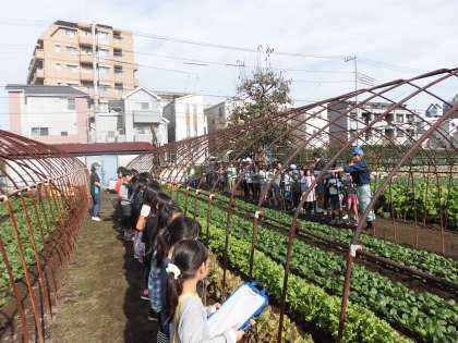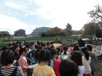 社会の学習で農家のお仕事について調べます。11月17日(火)は千歳台小学校の近くで農家のお仕事をなさっている方にお話を聞きに行きました。事前に何を見たいのか、何を聞きたいのかを考えていき、学習を深めることができました。ありがとうございました。