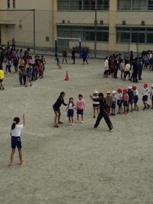 今朝の体育朝会は、長縄大会。