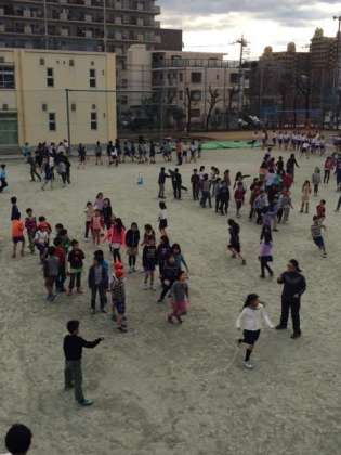 各クラスごとに、五分間で何回跳べるかチャレンジ。