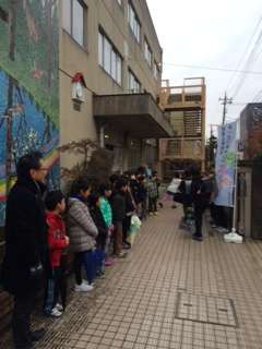 今週はあいさつキャンペーン週間です。今日の担当は2年2組。みんな元気に挨拶してお迎えです。