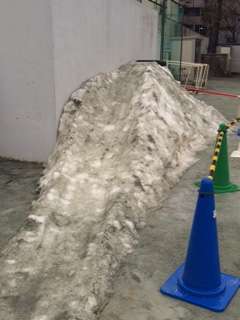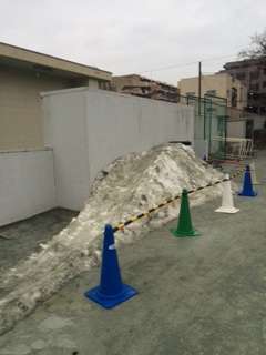なんと校庭に、雪の滑り台があらわれました。新潟県十日町から世田谷区に贈られた雪を譲り受け、デバンデスの皆さんが、雪の滑り台を作ってくださいました。みんなで仲良く遊ばせていただいます。