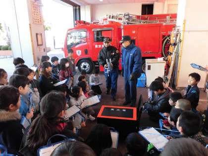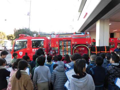 消防車や消火栓の中など、普段は見られないところを見学させていただきました。消防士さんの仕事やなぜこの仕事を選んだのかなど、キャリア教育の面からもたくさんのお話をしていただくことができました。消防署の皆様、ありがとうございました。