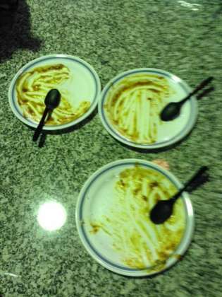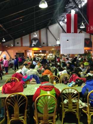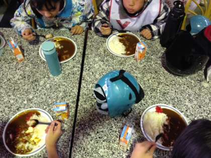 昼食をとってます。川場スキー場のカレーはスパイシーで美味しい。午前中スキーをがんばったから美味しさも格別でしょう。