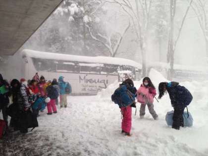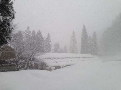 ふじやまビレッジを出ました。とにかくすごい雪。大自然の中です。みんな元気です。