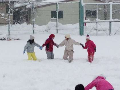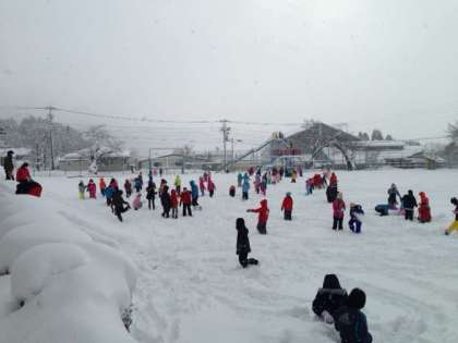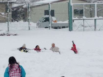川場小学校に着きました。最近は川場村でも雪が積もらないようになったと聞いていますが、今日は千歳台小の子供たちへの最高のプレゼントになりました。まずは雪遊び。それも東京での遊び方ではありません。新雪にダイブしている子供たちもいます。とにかくよかった。