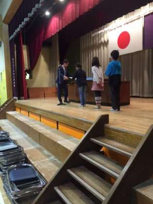 今日で四年生の全課程が無事に終了しました。代表3人が校長先生から修了証をいただきました。保護者の皆様方、ありがとうございました。