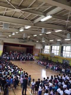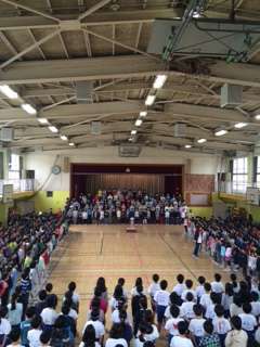 今日の音楽朝会は、みんなで、僕らの大切な歌、『校歌』を歌おうという朝会でした。