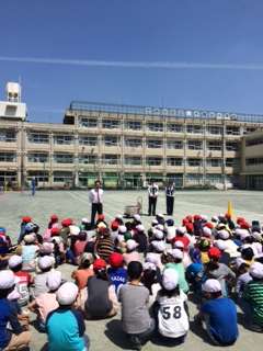 今日は成城警察のお巡りさんが1.2年生の交通安全教室に来てくださいました。命を守る大切なお勉強です。みんなしっかり聞いていました。交通事故『0』を目指しましょう。