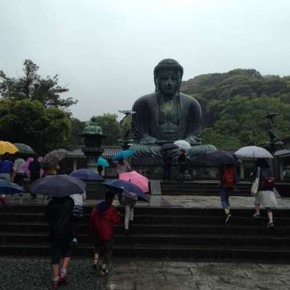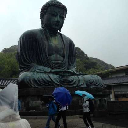 大仏に着きました。雨模様の大仏。空いています。写真を撮って、八景島に向かいます。