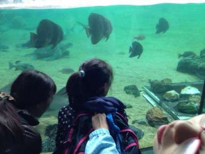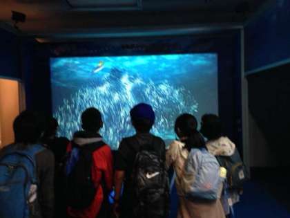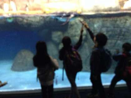 水族館の見学。ジンベイザメをはじめ深海魚、ペンギンなど様々な海の生き物を見ることができました。ホッキョクグマもいました!
