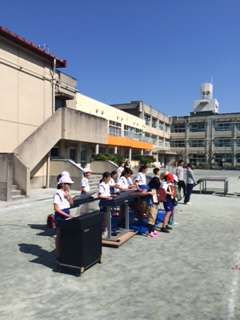 この画像は応援合戦の伴奏をしている音楽係さんです。素晴らしい演奏がみんなの歌声を上手に引き出してくれています。
