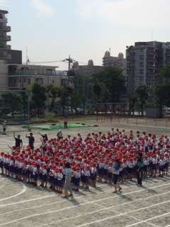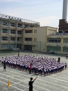 応援団が先頭に立ち、応援合戦の練習です。大迫力の応援合戦ですよ。