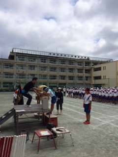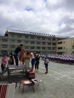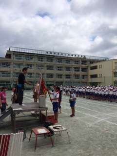優勝旗、準優勝杯の返還の練習です。応援団長さん、凛々しいなぁ。