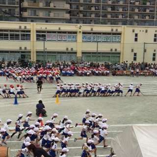 追っかけ綱引きといわれている綱引きです。チームに半分が走って途中から綱引きに加わります。