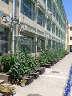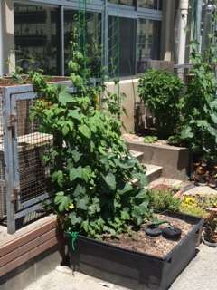 今年も緑のカーテンの季節になりました。ヘチマ、ゴーヤ、朝顔、きゅうり。大きくなーれ。