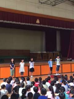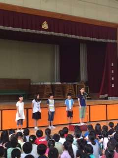 今朝も朝会で6年生がスピーチをしてくれました。『絆を大切にしたい』『相手の気持ちを考えて言葉を大切にしたい』『運動会のリレー選手の経験や組体操から学んだことをこれからも頑張る』などのお話を1400の瞳の前で語る6年生は立派です。