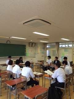 全体会を終えて、各教科ごとに集まって話し合いをしています。