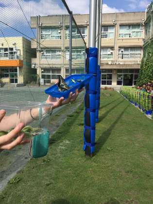 3年の教室前で育ててきたアゲハチョウ、相次いで羽化しました。今朝は朝会のあと3年生全員で見送りました。二、三回みんなの前をゆっくり飛んでから飛び去って行きました。