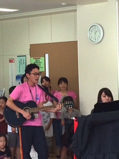 ピアノのH先生とギターのY栄養士とボーカルのM先生が『栄光の架け橋』を披露しました。