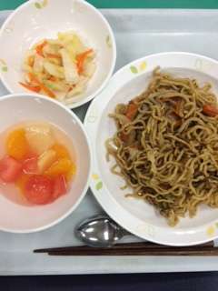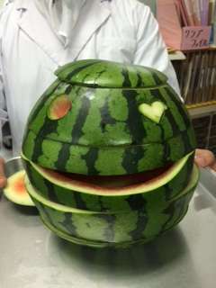 調理員さんがフルーツポンチに使ったスイカの皮でちょっと楽しい細工をしてくれましたよ。