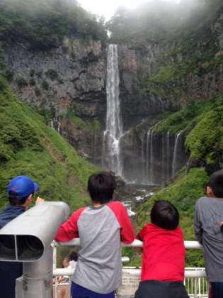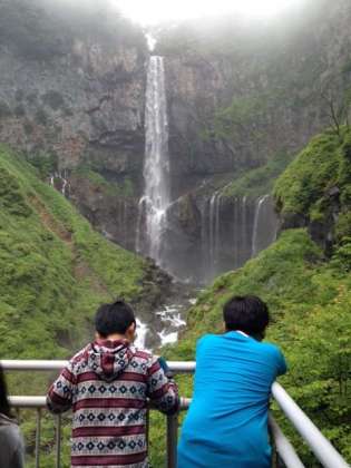 華厳の滝見学。霧が晴れ、よく見えました!感激。