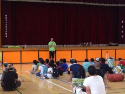 閉村式。協力して片付けをしたので、プログラムが早目に進みました。とっても楽しかった学校キャンプ。また来年が楽しみですね。
