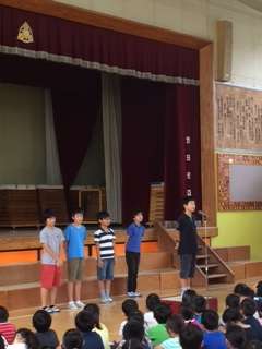 チャイムが鳴る前に全員揃って朝会の始まりを待てる千歳台小学校の子供たちは立派です。