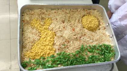 お楽しみの給食、今日はそぼろご飯でした。何時ものように蓋を開けてみると!何とお月見のうさぎと満月が。より美味しく感じながら、またまた完食しました。給食室の皆様ご馳走様でした。