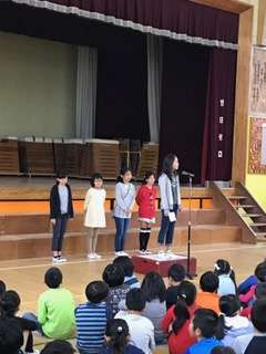 まずは、今週木曜日に行われる連合運動会にむけて1〜5年生全員で6年生に『頑張ってください』とエールをおくり、成功すること、うまくいかないこと、そのどちらも大きな力になります。一生懸命頑張って、充実した連合運動会にしてくださいとお話しました。