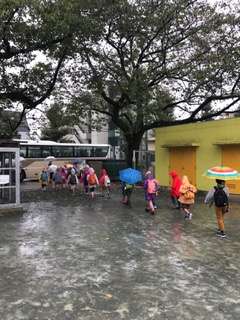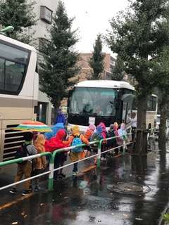 雨の遠足となってしまいましたが、子供たちは楽しそう。