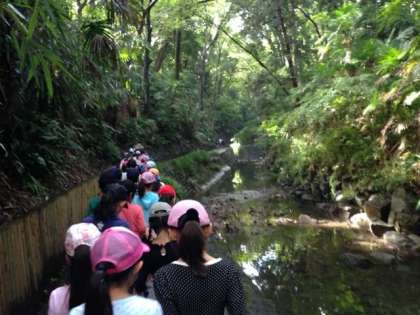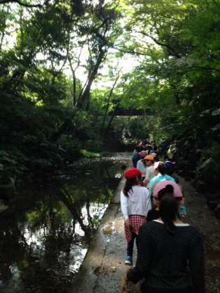 等々力渓谷を歩いています。雨上がりの土の匂いが、また一段と自然の雰囲気を醸し出しています。水もきれいで清々しいです。