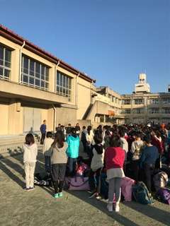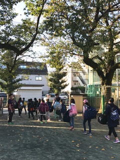 素晴らしい青空。絶好の川場移動教室日和です。5年生104名、全員元気に出発いたしました。