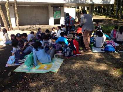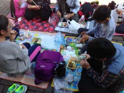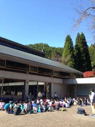 ふじやまビレジに到着し、開室式をしました。本当に素晴らしい天気。昨日の朝は気温0℃以下だったとビレジの職員からお聞きしました。暖かで自然の空気いっぱいの中、お弁当を美味しくいただきました。