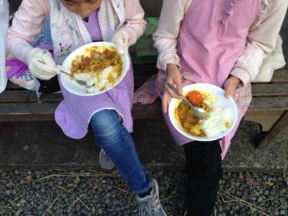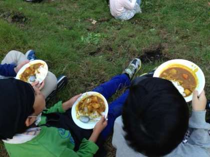 飯盒炊さん。自分たちで作ったカレーライス。おいしいに決まってます!