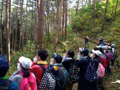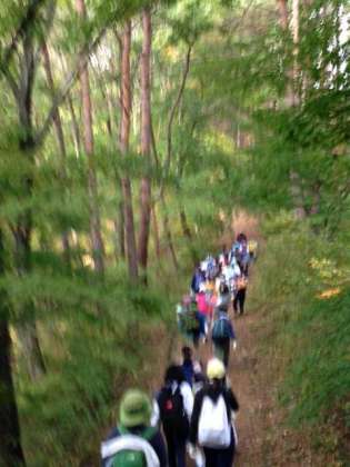ハイキング。清々しい風と木漏れ日。クラス全員で声を合わせて本物のやまびこもききました。