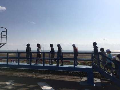 中央防波堤埋め立て処分場の中に入り見学しています。とても広い場所ですが、この子供たちが大人になった時までには、いっぱいになってしまうとのこと。考えさせられます。よい見学になったと思います。