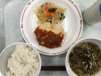 「この日は最高においっしいハンバーグを作りましょう!」その言葉から始まった調理員との打ち合わせ。そのためにどうしたらいいかと材料から話し合いました。また、調理法や切り方、形や大きさなど話し合うこと40分。調理員がみなこれならいけると納得のいくハンバーグの作り方を決めることができました。当日の朝、朝礼にて、「みんなでこのハンバーグおいしいといってもらえるよう今日はがんばりましょう!」の掛け声から始まりました。作る時、焼く時、配缶する時、ソースをかける時など一つ一つの工程で注意を払いながら作り、出来上がった豆腐ハンバーグ!数を少し多めに各クラスに配ると、給食の後、6年生から、「あのハンバーグ最高にうまかった!」とコメントをいただきました。また、今日がランチルーム給食最後の2年2組のお友だちからは、クラスの半分以上の16名がハンバーグをおかわりしてくれました。おいしそうに食べてくれてよかった!嬉しい気持ちを最後2組のお友だちに伝えると、「来週もたくさん食べるね」といって、ランチルームをあとにしました。