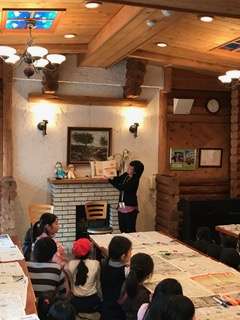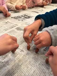 図書ボランティアの皆さんが、『どんぐり』の本を読んでくださり、その後、みんなで『どんぐりこま』を作りました。
