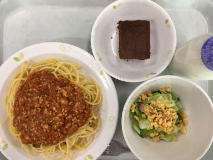 今日は学芸会の一日目です。リハーサルの時からやや緊張気味のみんな。一生懸命練習をしてきた姿のことを覚え、給食室から終わった後にささやかながらチョコレートブラウニーでお疲れ様の気持ちを伝えることにしました。中には11月の献立表を配った日からこの日を楽しみにしていた!と話してくれた人も!給食の時間、午前中に演技を終えたみんなはブラウニーを食べてホッとした様子。(まだこれから演技をする4、6年生はがんばるぞ!の意気込みになったとききました。)みんな本当にお疲れ様でした。明日は保護者の方に向けて演技をする日。最高のパフォーマンスができるよう、給食室から応援してます!