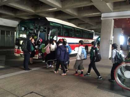 6年生を乗せたバスは、14時12分に江戸東京博物館を出発しました。
