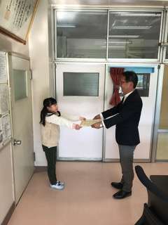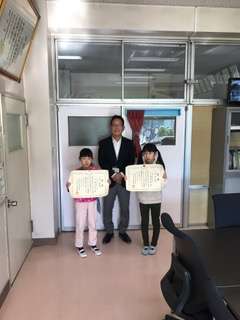 今日の輝く千歳台っ子は、『小学生下水道研究レポートコンクール』で入選したお二人です。素晴らしいですね。おめでとうございます。