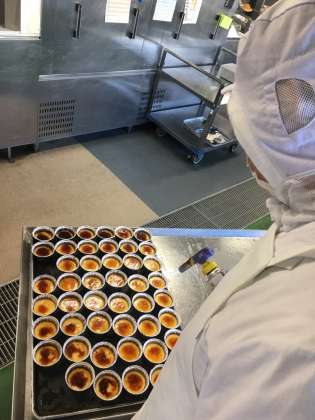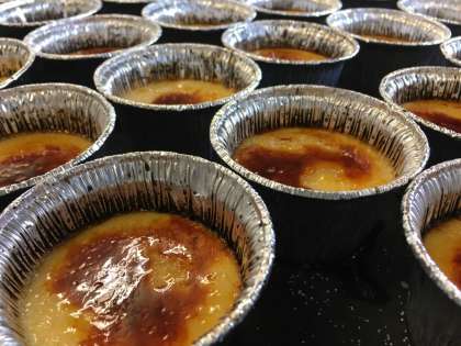 給食が終わった後、ある6年生が近くにきて一言。「先生、またあのプリンだして!!」どのプリン?!と笑顔で返すと、「プリンの上に黒いのがついてるやつ!」その言葉でどのプリンか理解できました。それは、夏川場交流給食でだしたクリームビュリュレです。あの時は200人だから出せたものの、全校だと740個作ることになる。瞬時に無理だ!という二文字が脳裏をかすめました。しかし、それを食べたいと切望する子がいるなら、、、考えた末「検討してみよう!」とだけその子に伝えました。廊下であった出来事を調理員に話をすると、「先生、それは厳しいです!」やっぱり…でも、やったことがないからやってみたい!一人でもそれで喜んでくれるなら!と説得し続けたると、「わかりました。それだけいうならやりましょう!」といってくれました!さすがチーフ!前回はプリンを焼く人が一人でしたが、今回は3人!バーナーも5本用意して、調理開始!1時間で砂糖は焼いても液体になってしまうため、時間を気にしながらギリギリに焼き上げました。できた!急いでバットに詰め、子供たちのもとに届けると、笑顔いっぱいにプリンを食べてくれました。また、それを食べた先生方も、「このプリンうまぃね!!」と絶賛。頑張ったかいがありました。2学期も無事給食を届けることができ、皆様に本当に感謝です。3学期ももっとおいしい給食を目指して調理一同邁進してまいりますので、よろしくお願いいたします。よいお年を★