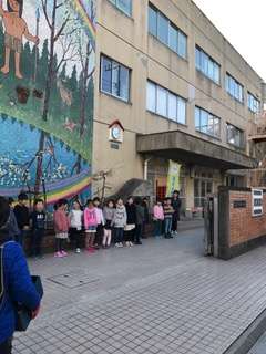 今日から学舎合同あいさつキャンペーン、そして、5Bあいさつキャンペーンです。今日は2年2組のみんながあいさつ当番さんとしてみんなを迎えてくれました。