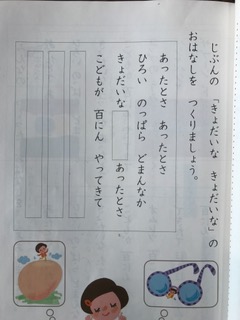 〇〇を自分で考えて、その後の文章を考えます。みんな 楽しんで考えていました。