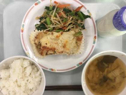 千歳台小学校のお友だちの中には魚が苦手だという人が少なからずいます。理由は、「骨を取るのがめんどくさい」「味がいやだ」など千差万別の模様。そのため、本校では魚がおいしい!といって食べられるように日々工夫をしています。その工夫の一つが今日の一品!魚のポテトクリーム焼きです。これは、魚を醤油、酒、みりんで2時間漬け込んだ後、マッシュしたジャガイモと牛乳、塩こしょうでマイルドにし、とろけるチーズとパン粉でカリッと焼きあげた料理。魚の臭みや味が気にならないようにしてあります。反応はどうかな?1年生から6年生までどの学年も喜んで食べてくれました。魚が苦手だといっていた1年生のお友だちも残さず食べてくれるようすを見て、これならいけるな!と嬉しくなりました。今月はまだ魚の料理があります。続く魚料理の工夫も、ぜひお楽しみに!!