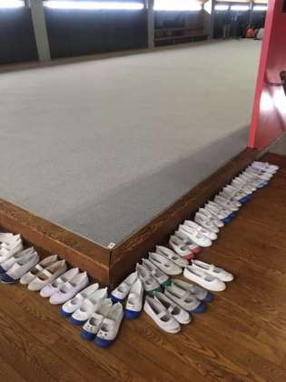 食事の後に、明日の片付けについて確認しています。5年生は集合も行動も早く、大変素晴らしい。その心が指示をされなくても揃えている上履きに表れています。