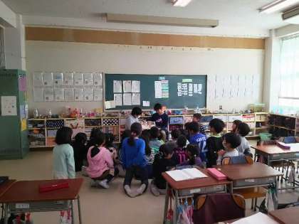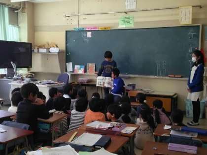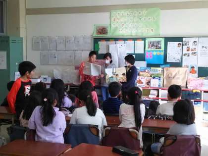 図書委員の六年生が、二年生の各クラスに読み聞かせに来てくれました。