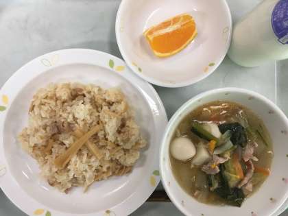 職員室ででた質問です。内容を聞くと、「もち米は何割入っているの?」ということでした。「2割ですね。」そう答えると、他校で食べた中華おこわはほとんどもち米だったとのこと。なるほど。学校によって料理名が同じでも、使用する食材が変わることがあるのか。。。と改めて考えさせられました。ちなみに、本校では具を作ってから炊飯釜で具と混ぜ合わせていますが、白米ともち米の割合を4:1にしたときが一番きれいに混ざったので、その割合で作っています。この気づきはほかの料理でもあるかも!と思ったので、他校の料理研究もこれから進めていきたいと思います!