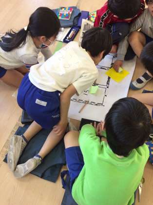 土曜日に行ったフィールドワークに基づいて、いよいよマップ作りです。相談しながら場所と写真を確認して作業を進めていきます。