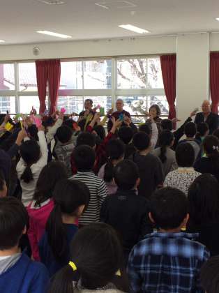 残念なことに途中で中止せざるを得なくなった、花の丘活動。それでも5回に渡って菜の花やヒマワリの種蒔き・後始末の仕方などを教えていただきました。土に触れ、様々な植物について学ぶ良い機会になりました。今日は、お世話になった田勢理事長さんをはじめ4人の方々を囲んでささやかながら感謝の会を開きました。写真は歌のプレゼントをしているところです。